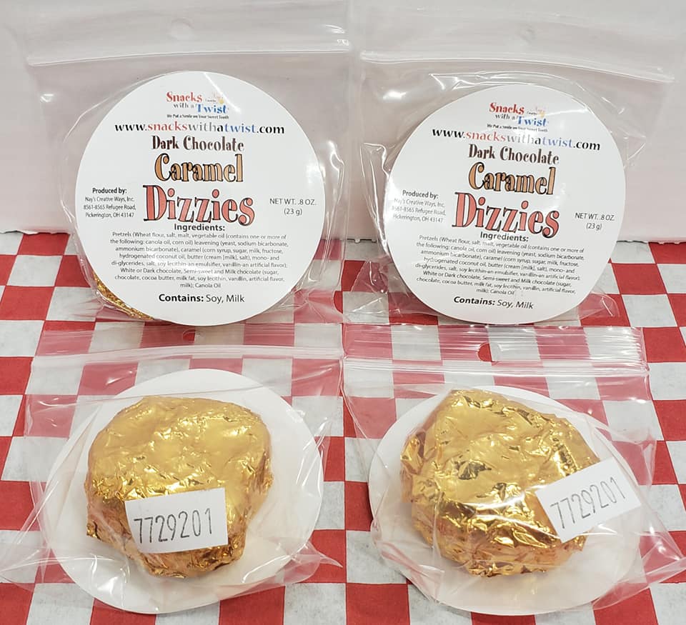 Meet the Dizzies - the newest treat from Snacks With A Twist! We've taken our sweet and delectable caramel filling, sandwiched it between two pretzels, then dipped it in our smooth dark chocolate blend for a sweet and salty treat that will melt in your mouth!